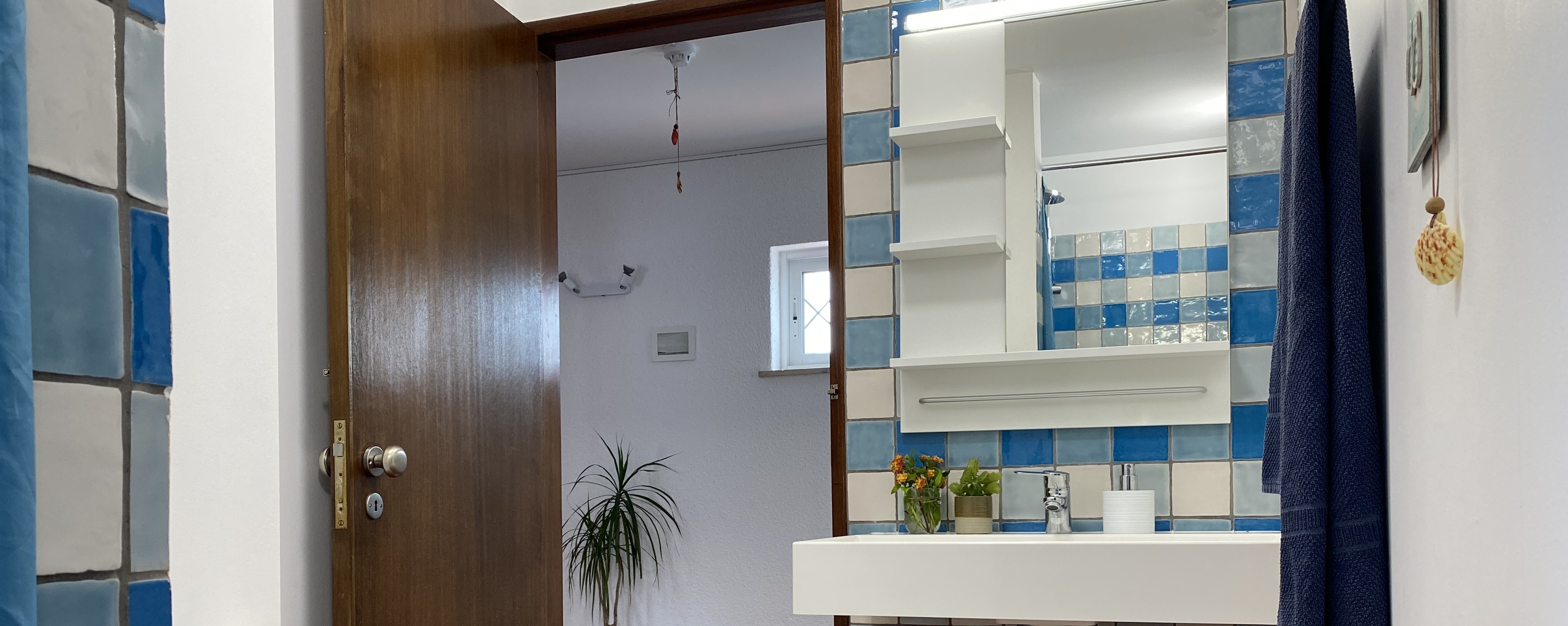 Just as quickly as you can reach the beach, you’ll find yourself in the center of Praia das Maças. There are cozy cafes and small shops, a supermarket, and a farmers’ market with fresh fish and vegetables from the region every morning. Two minutes from our doorstep, a bus takes you to Sintra if you’re in the mood for sightseeing.